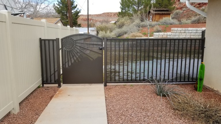 Home Ornamental Iron and Steel Framed Vinyl Gates Serving Southern Utah and Surrounding Areas Single Gates Double Gates Entry, Fences, Railings Share this: Click to share on X (Opens in new window) X Click to share on Facebook (Opens in new window) Facebook